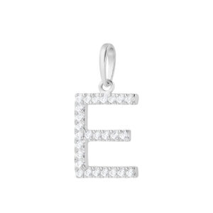 Ciondolo lettera E in oro bianco e zirconi