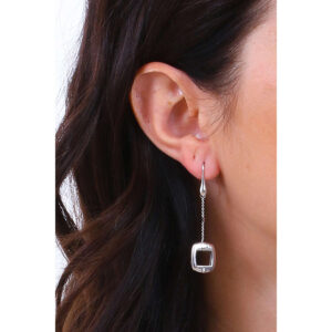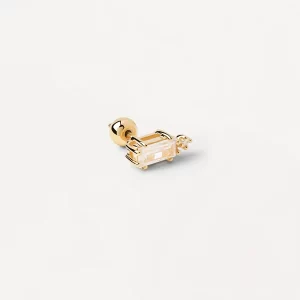 - Orecchino singolo a lobo in argento rodiato 925‰ con square cubic zirconia chiari e baguette cubic zirconia colore golden yellow.