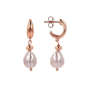 - Orecchini pendenti Bronzallure realizzati in lega Golden Rosé, placcati oro rosa 18kt, impreziositi da perle coltivate d'acqua dolce bianche (14 mm) e da pietre naturali quarzi rosa dalla forma ovale. L’orecchino presenta una chiusura a perno e farfalla, lunghezza di 3.6 cm.