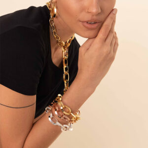 Bracciale rigido a tubo triangolare con chiusura a scatto laterale. Volume riconoscibile e design d’ispirazione vintage per questo emblematico bracciale. Un modello unico che riprende in chiave contemporanea lo stile Art Déco. Indossalo in tutti e tre i colori per un look dal fascino irresistibile.