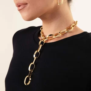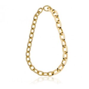 Bracciale di catena forzatina ovale a tubo triangolare con bagno in oro e chiusura a moschettone. Tradizione orafa, volumi importanti e design riconoscibile per un gioiello che unisce l’eleganza classica della moda catene ad uno stile urbano e moderno, in linea con le ultime tendenze.