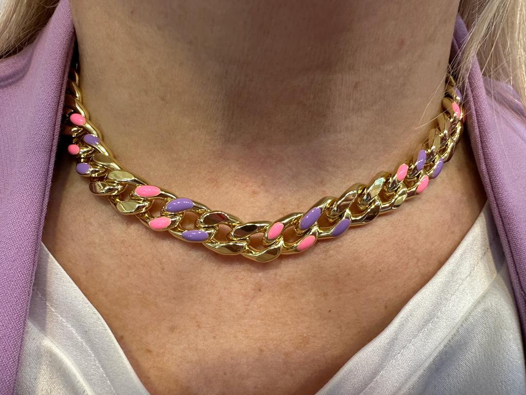 Collana groumette, bagno galvanico in oro e smalti colorati.
