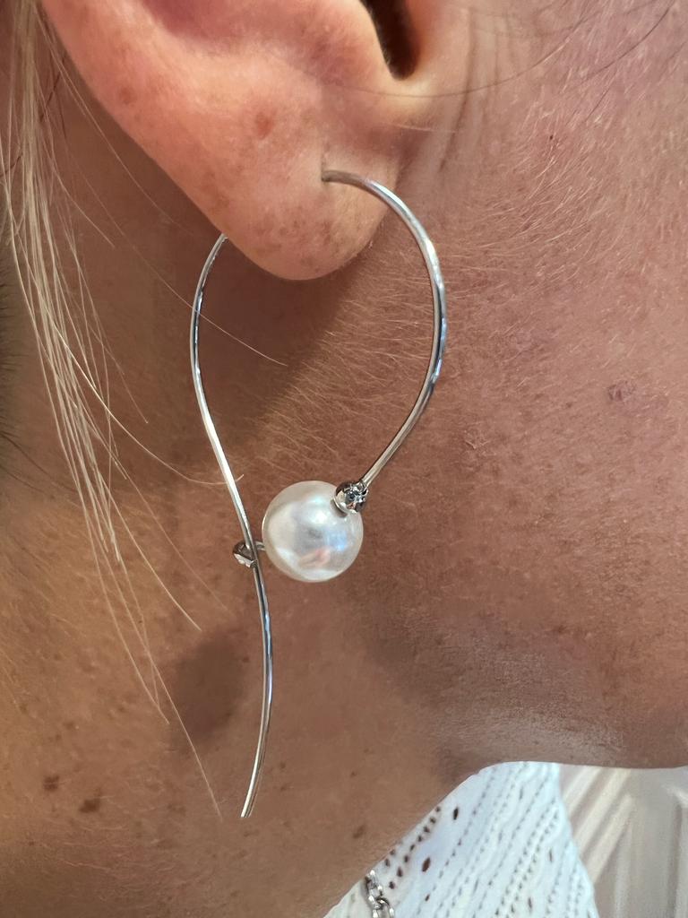 Il fascino senza tempo delle perle si fonde con la luce dell’argento rodiato in questi particolarissimi orecchini dal design essenziale ed ergonomico.