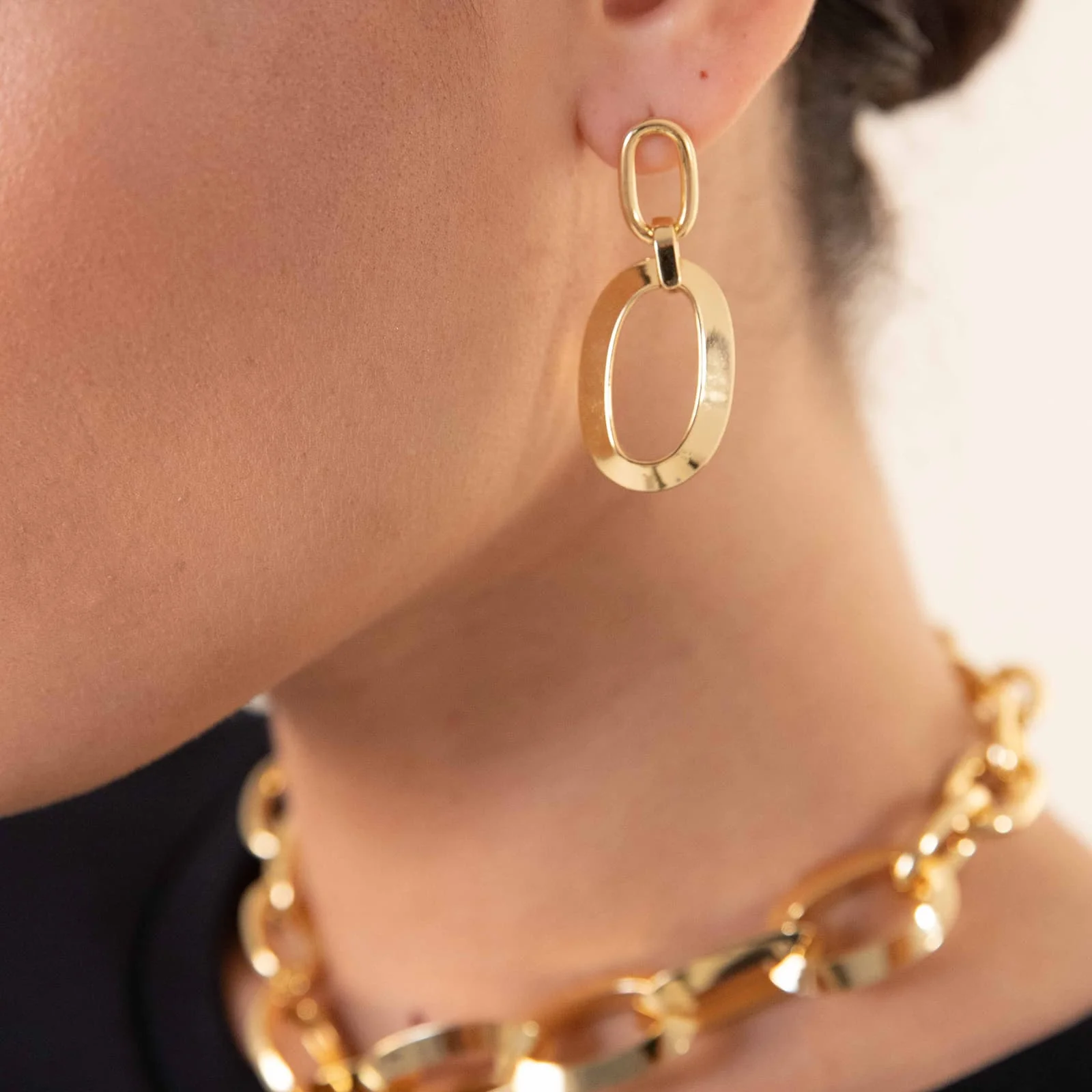 Orecchini pendenti con maglie di catena forzatina ovale a tubo liscio e triangolare. Un gioiello in catena che grazie alle particolari maglie ovali acquista un fascino contemporaneo e grintoso. Indossa questi orecchini insieme a collana e bracciale coordinati per un tocco rock a tutti i tuoi look.